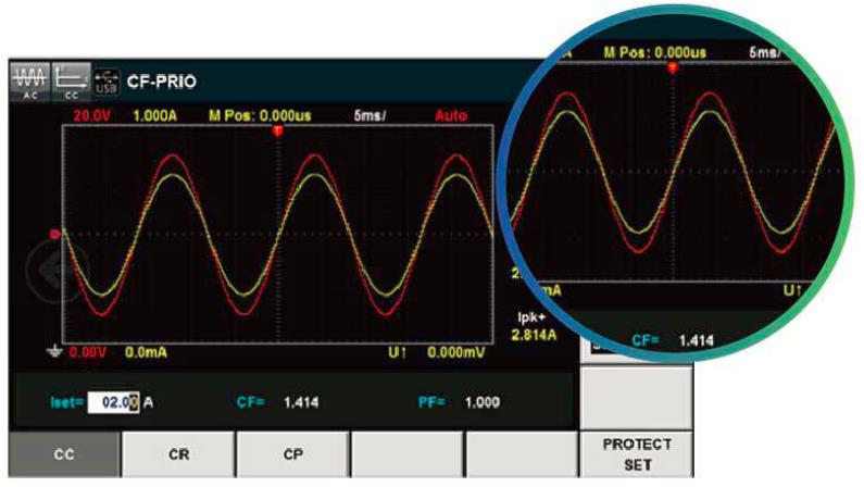 ♦ 示波器波形顯示功能,顯示電壓和電流波形